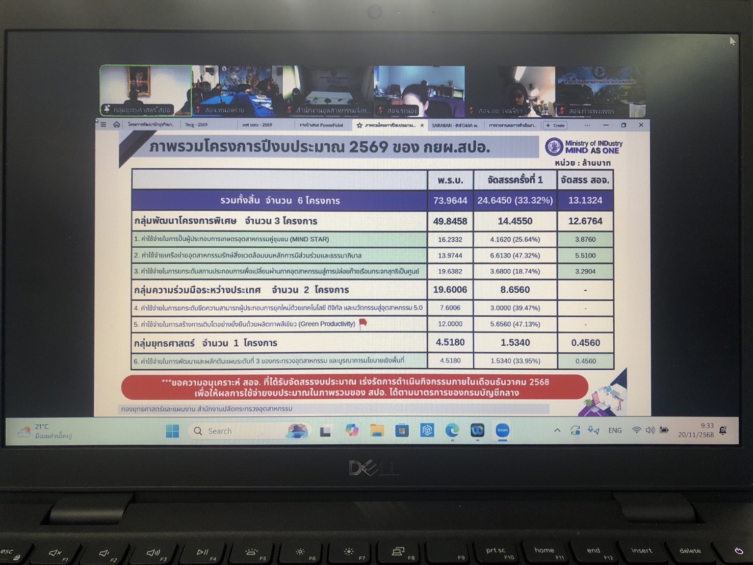 นายกิติพงษ์ ชลิทธิกุล อุตสาหกรรมจังหวัดหนองคาย มอบหมายให้ นางสาวพิกุล โมครัตน์ นักวิชาการอุตสาหกรรมชำนาญการ พร้อมด้วย นางอัจฉรา คำหมาย นักวิชาการอุตสาหกรรม และ นางสาวนงลักษณ์ ห้วยทราย นักวิเคราะห์นโยบายและแผน เข้าร่วมรับฟังการชี้แจงแนวทางการดำเนินโครงการที่ได้รับการจัดสรรงบประมาณรายจ่ายประจำปี พ.ศ.2569 จำนวน 4 โครงการ ได้แก่ 1) โครงการปั้นผู้ประกอบการเกษตรอุตสาหกรรมคู่ชุมชน (MINDSTAR), 2) โครงการยกระดับสถานประกอบการเพื่อเปลี่ยนผ่านภาคอุตสาหกรรมสู่การปล่อยก๊าซเรือนกระจกสุทธิเป็นศูนย์, 3) โครงการเครือข่ายอุตสาหกรรมรักสิ่งแวดล้อมบนหลักการมีส่วนร่วมและธรรมาภิบาล และ 4) โครงการพัฒนาและผลักดันแผนระดับที่ 3 ของกระทรวงอุตสาหกรรม และบูรณาการนโยบายเชิงพื้นที่ ผ่านสื่ออิเล็กทรอนิกส์ Zoom Meeting